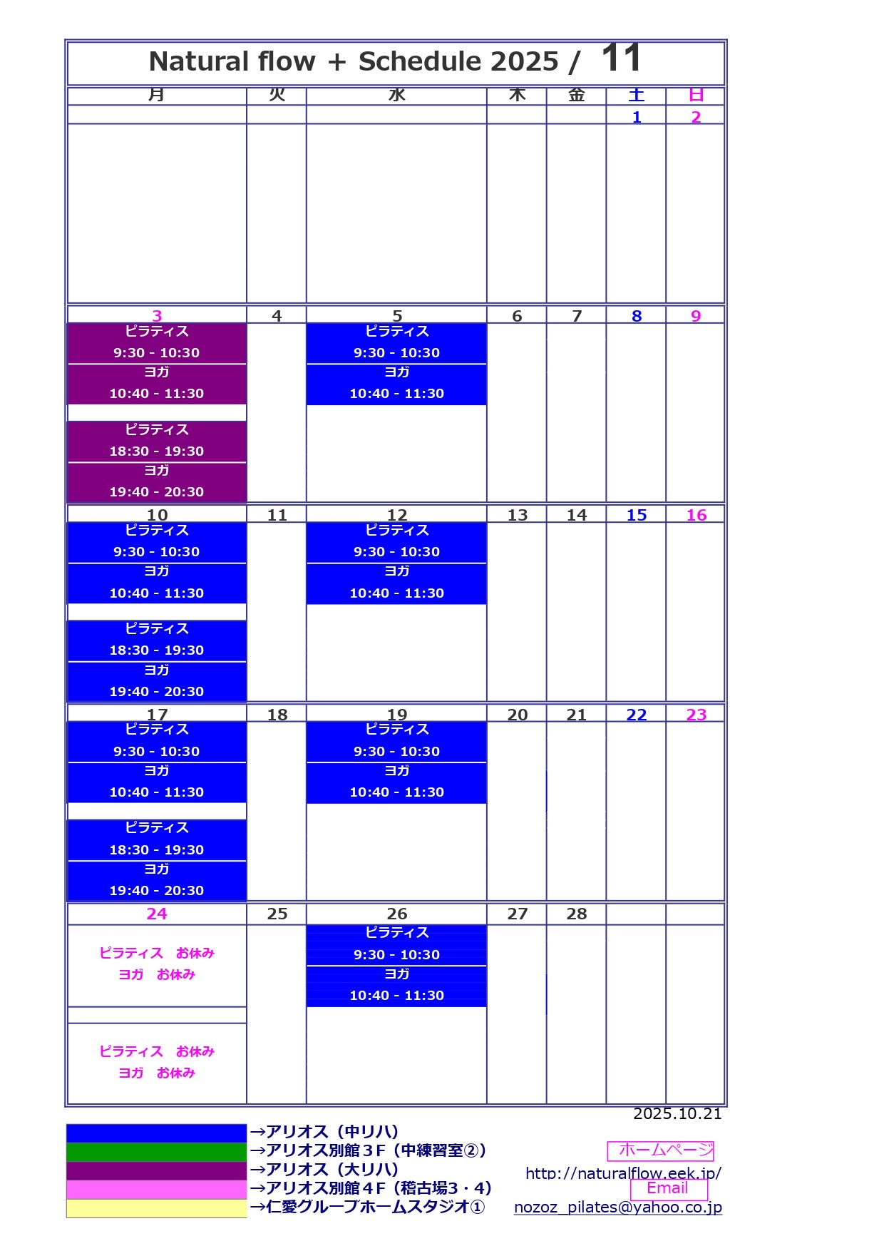 11月のスケジュールは表の通りですよろしくお願いいたします。