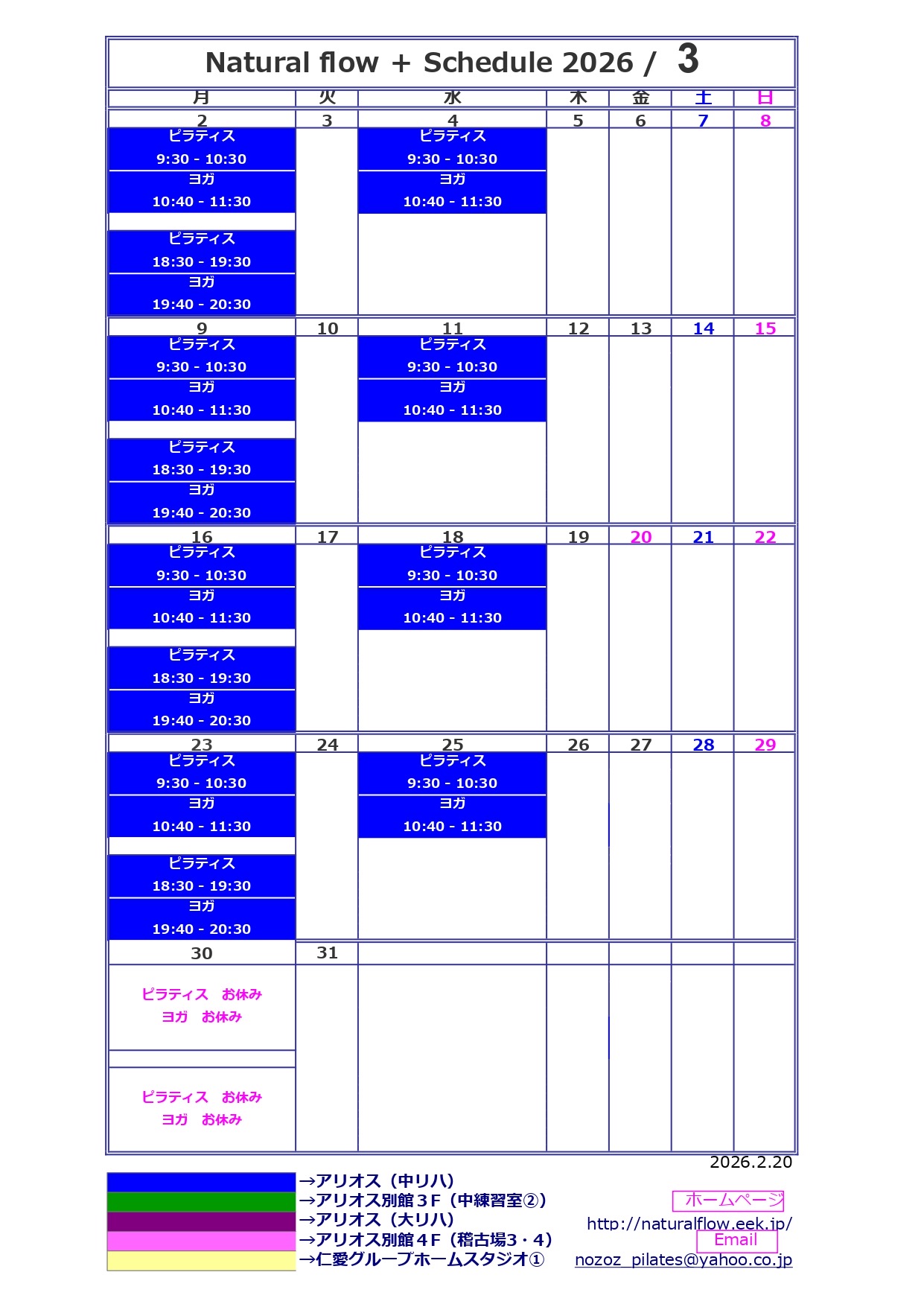 3月は添付したスケジュールの通り行います🌸